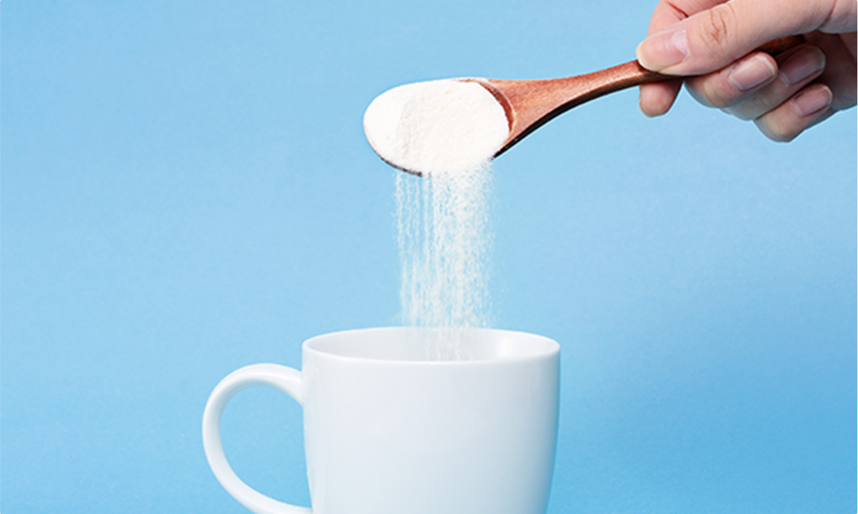スプーン大さじ1杯(5.6g)を目安に飲み物などとよく混ぜてお飲みください。